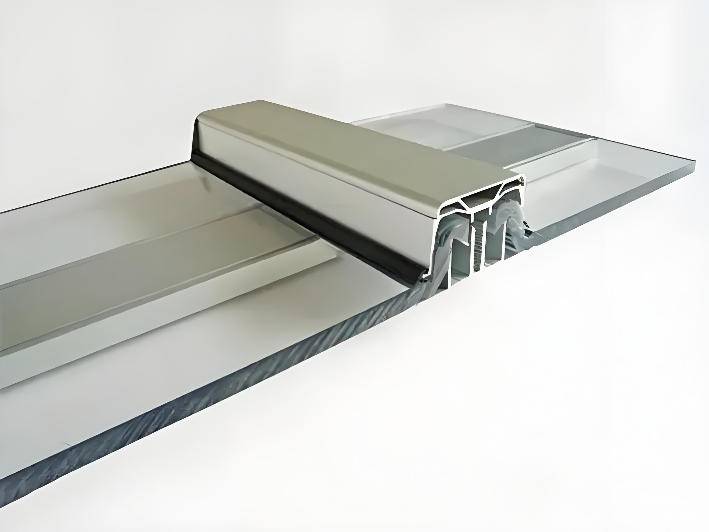 3、PC锁扣板的U型连接及自由的浮动结构,能增强外力能力,解决热胀冷缩问题进而达到防渗漏水。